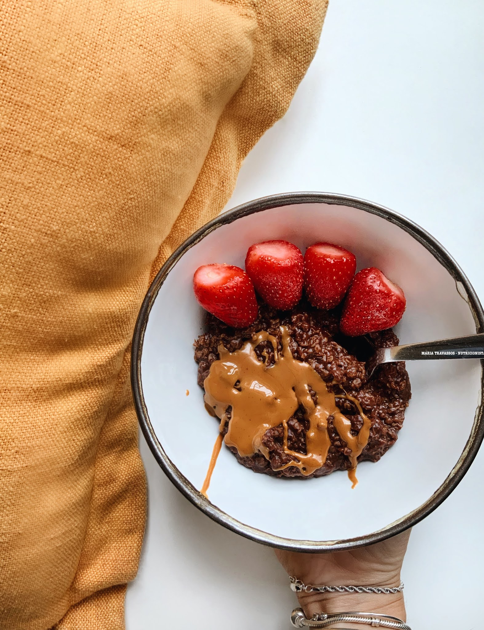 - por fim, acrescentar os morangos e a manteiga de amendoim! - fica também delicioso com outras frutas 🤤🤤
