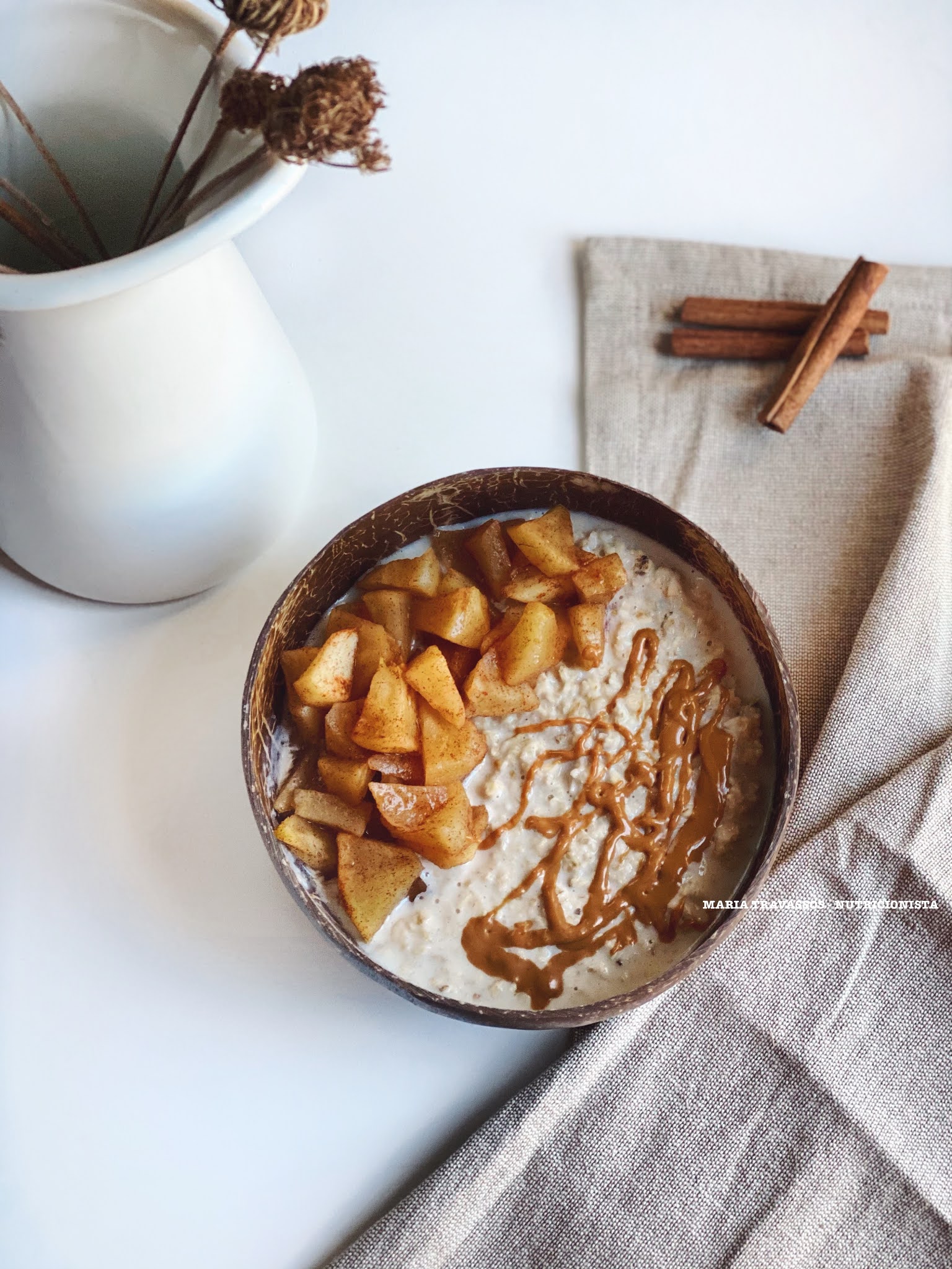 - acrescentar a maçã cozida, a manteiga de amendoim e polvilhar com mais canela 🤤